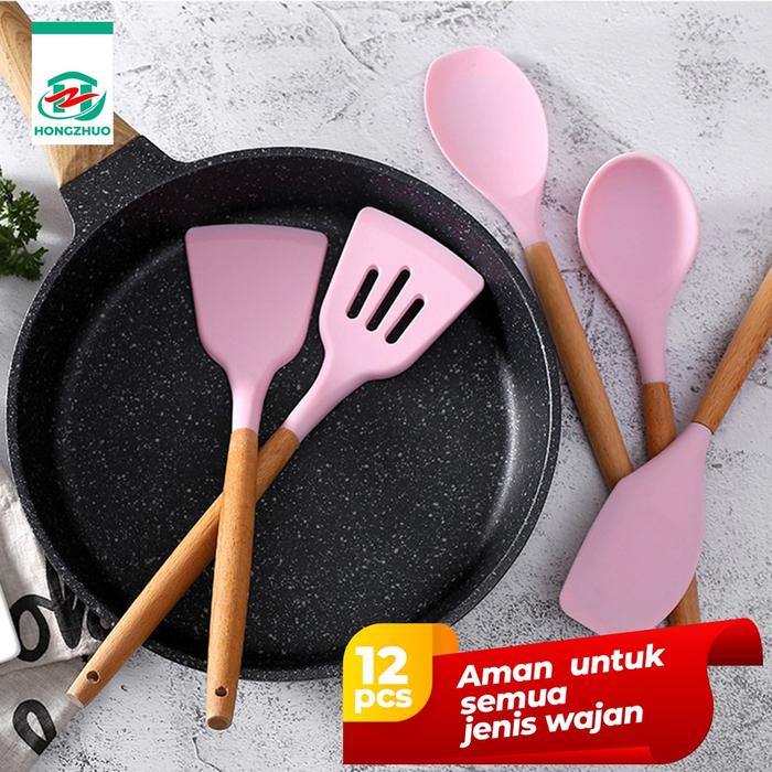 Tifale X HL Silicone Utensil 12 Pcs Spatula eralatan Masak Sutil Pegangan Kayu Baking Set Alat Masak