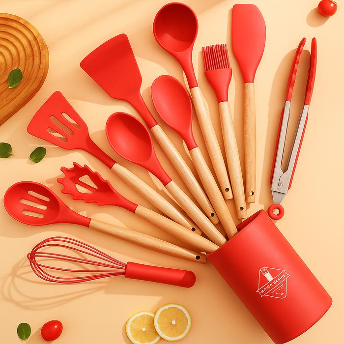 SPATULA SILIKON 12 IN 1 Kitchen Set Spatula Masker Alat Dapur Tahan Panas Peralatan Masak Serbaguna