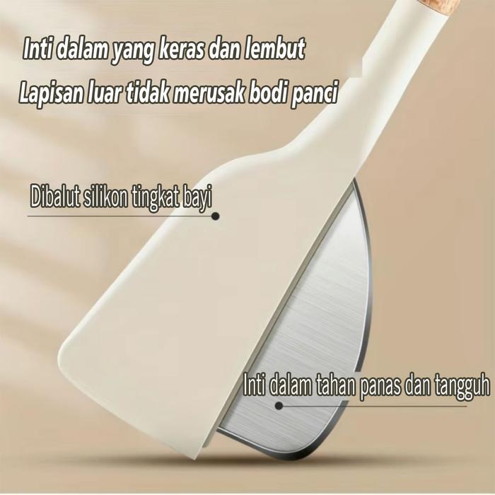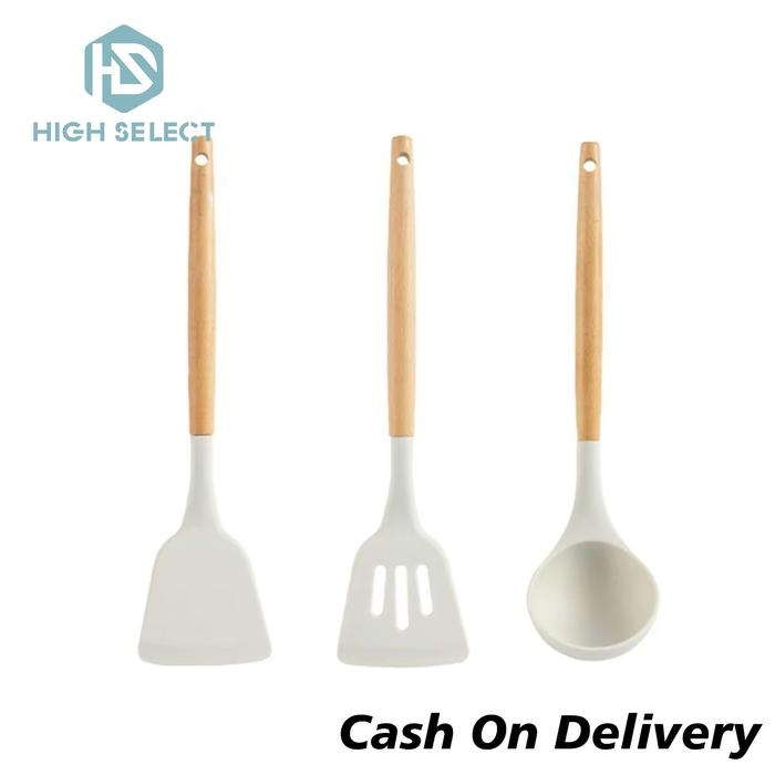 HIGH SELECT Set Peralatan Dapur Silikon Putih Alat Masak Peralatan Dapur Anti Lengket Kayu