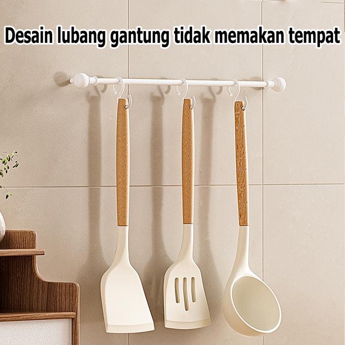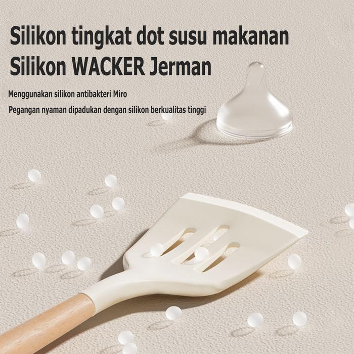 HIGH SELECT Set Peralatan Dapur Silikon Spatula Teflon Set Dapur Kayu PeralatanKitchenware