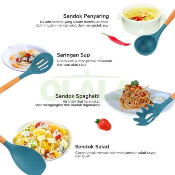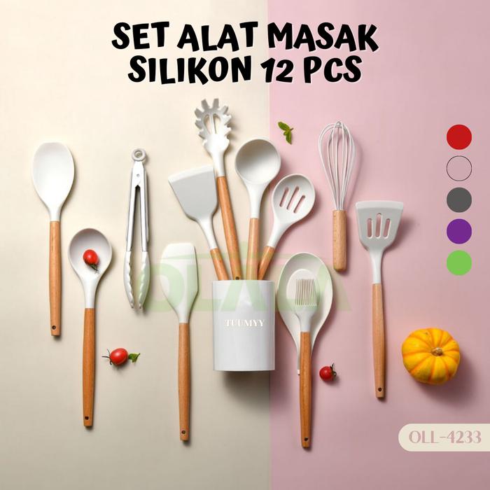 ALAT MASAK SET PERALATAN MASAK 12IN1 SET SILICONE KITCHEN SET UTENSIL SPATULA COOKING BPA-FREE