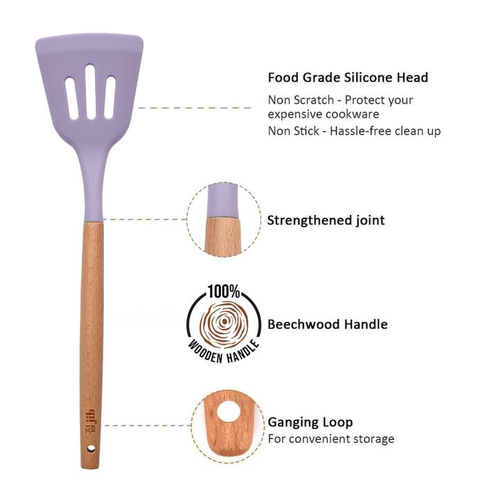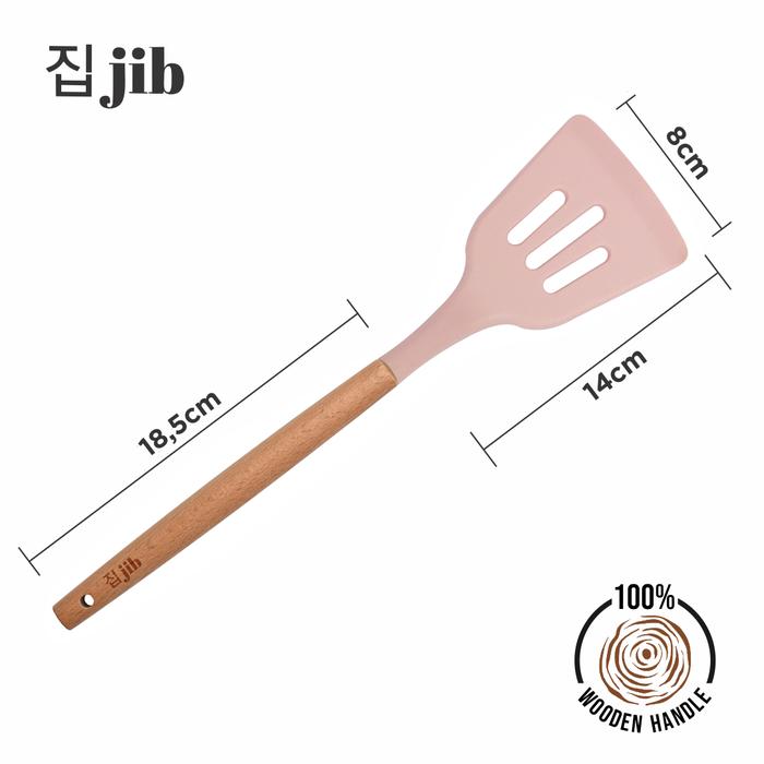 JIB Silicone Slotted Spatula Silicone Utensil Utensile Slotted Turner Kayu Silicon