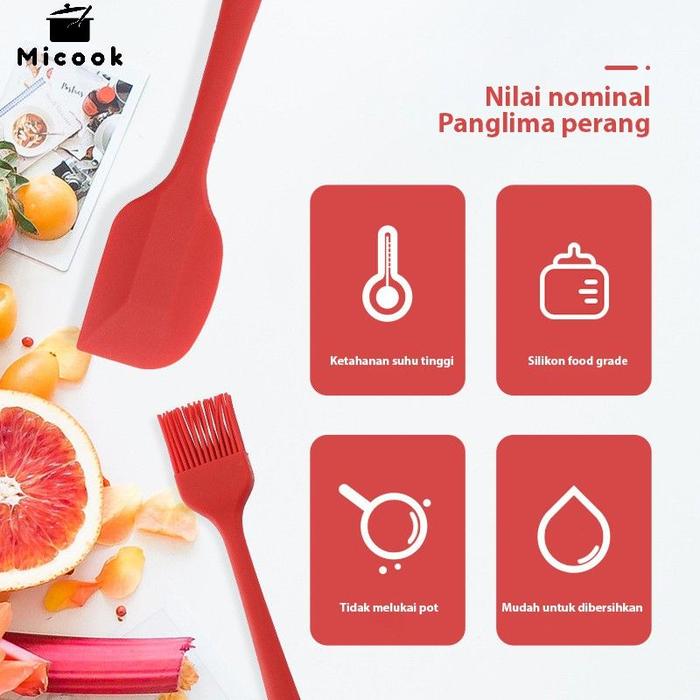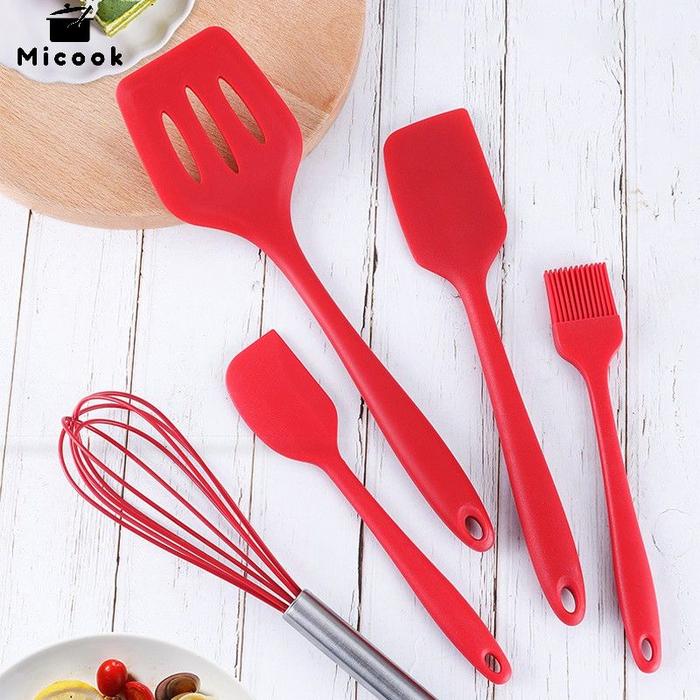 Micook SPATULA SILIKON 5 IN 1 Set Alat Masak Sutil Scrap Kocokan Silicone Anti Lengket Tahan Panas