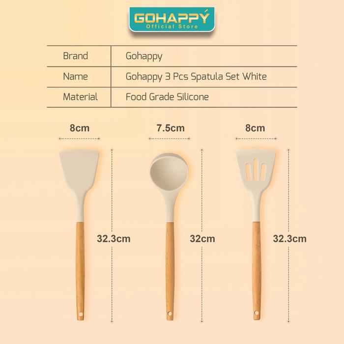 Spatula Set Silikon isi 3 IN 1 GOHAPPY SUTIL SILICONE 3PC PERALATAN DAPUR SODET SILICON Alat Masak