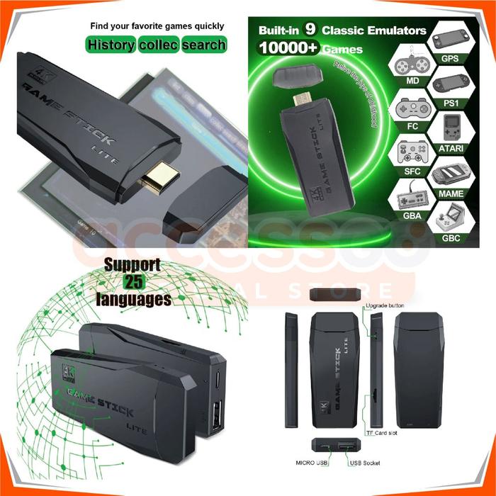 Game Stick M8 4K Ultrahd 10.000+ Retro Games Portable Console Gamebox 2.4G Wireless Hadeemi Tv Bergaransi Resmi - M8