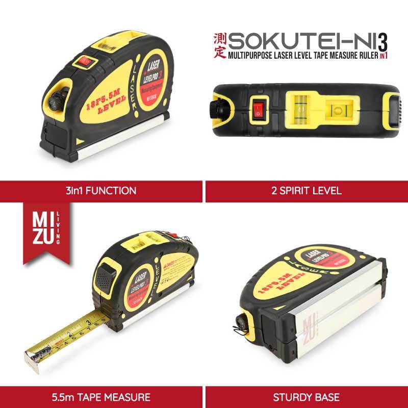 MIZU SOKUTEI-NI 3in1 Multipurpose Laser Level Tape Measure Ruler Laser Waterpass Aligner CARPENTRY TOOLS