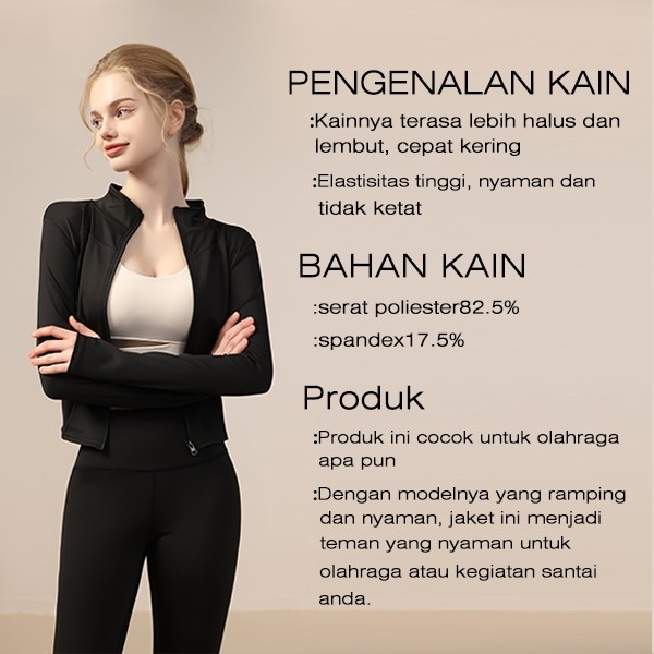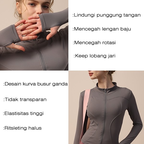Jaket Olahraga Wanita Lengan Panjang Pakaian Slimfit Body Yoga Untuk Olahraga Gym Fitnes Anti UV