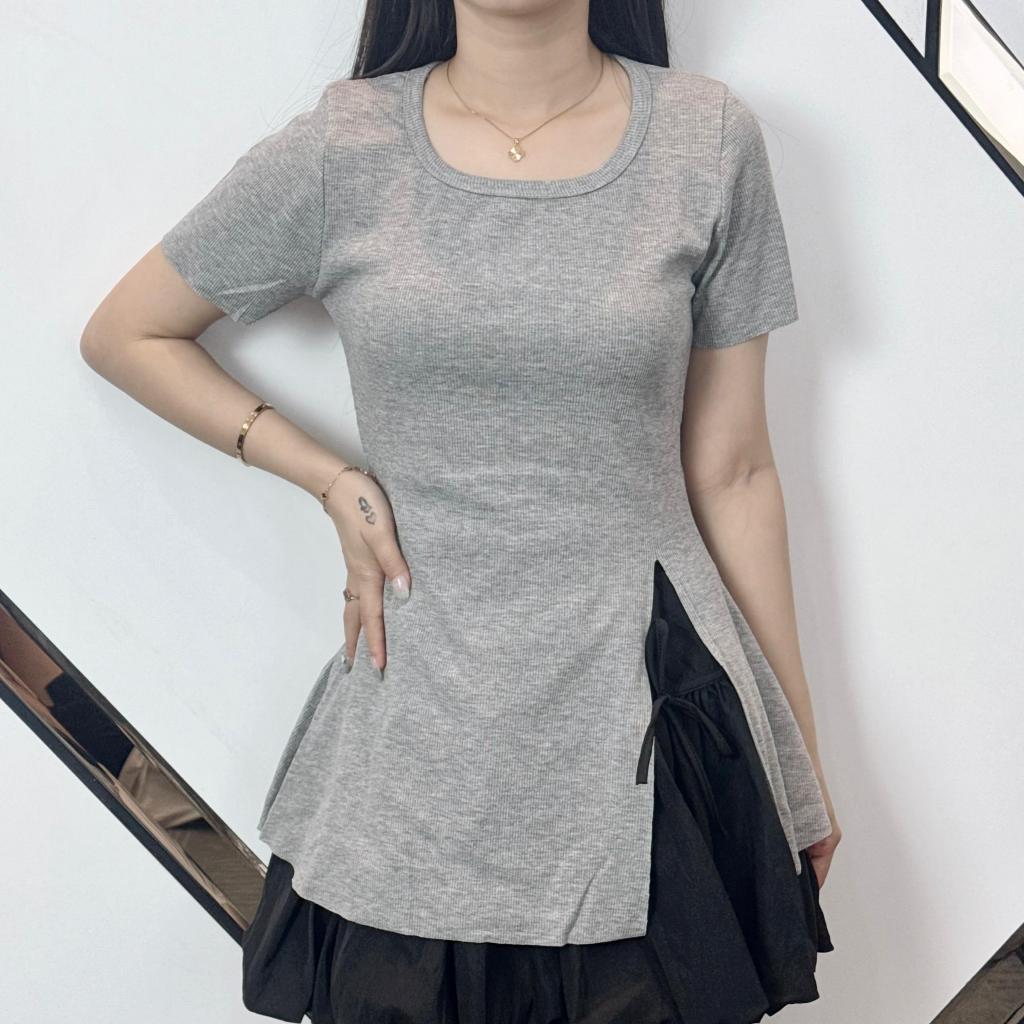 Ivona Shirt Knit Rib Top Short Sleeve / Atasan Knit Wanita Belah Samping Lengan Pendek