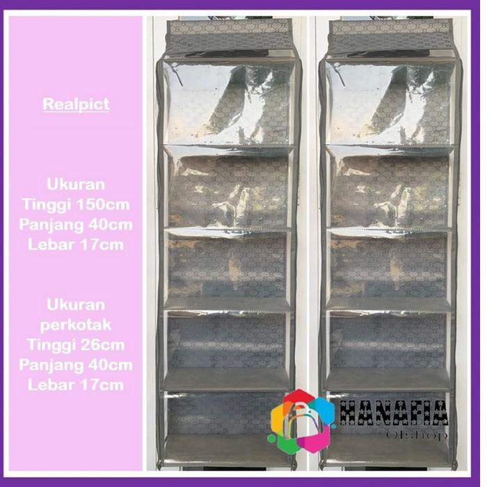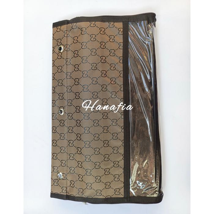 Rak Tas Gantung Jumbo Mika Tebal Alas Triplek Resleting Kanan Kiri Tempat Tas Besar - Ghucchi M1Kr00 Hitam