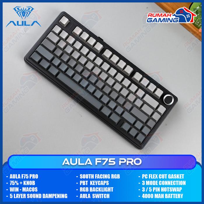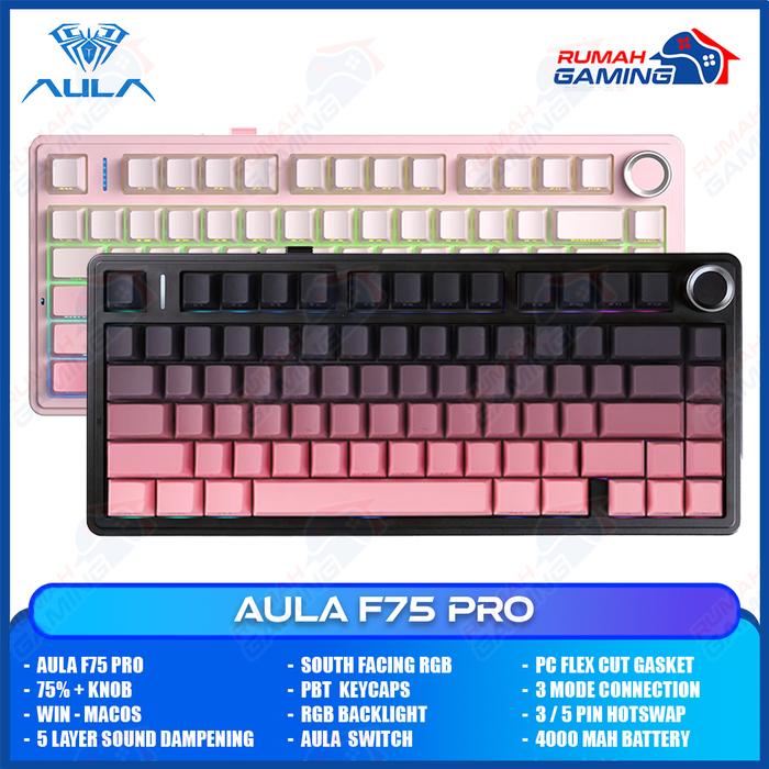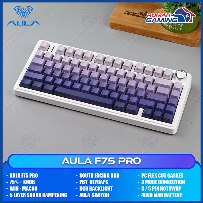 Aula F75 Pro - 75 PERSEN Compact - 3 Mode - Gaske Mount - Rgb - Pbt Keycap - South Face - Mechanical Keyboard - Glacier Blue