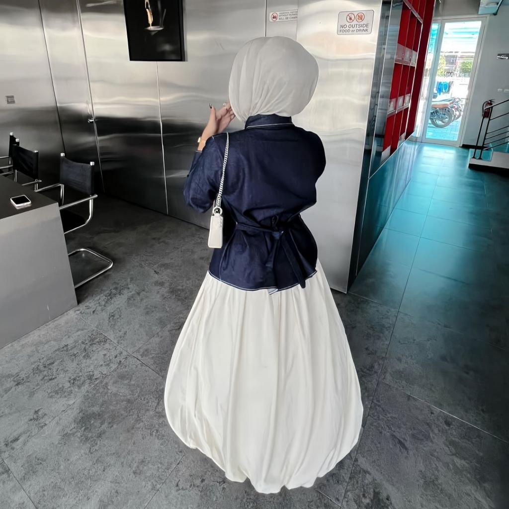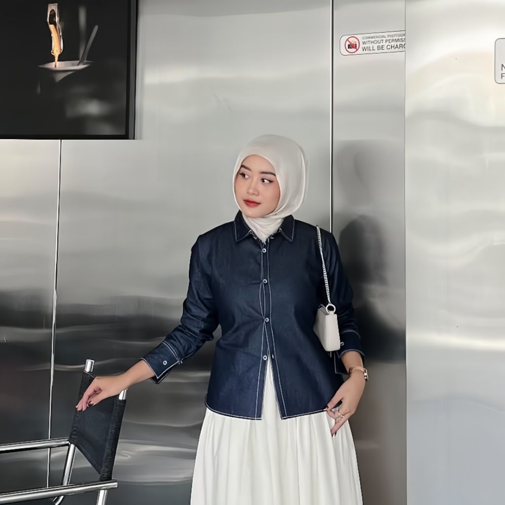 Elisa Kemeja Tali Crop Denim Wanita Katun Jeans