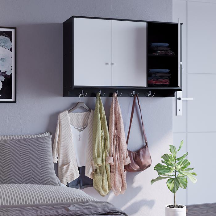 HomedLemari Pakaian Gantung 3 Susun Tempel Dinding Multifungsi Serbaguna Kode 059 Plywood Grade A Hitam Putih Kombi P