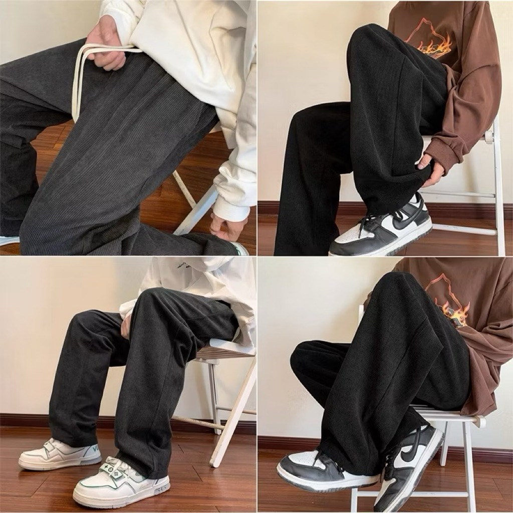 celana korduroy pria corduroy pants pria celana oversize pria wide leg korean style corduroy Pacar celana longgar celana kulot pria sederhana import