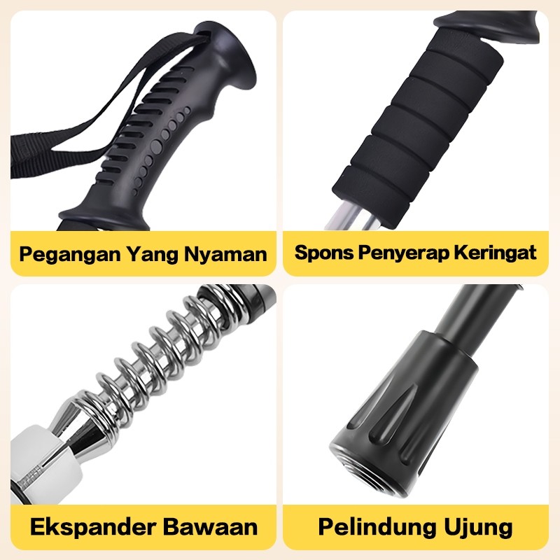 65-135cm Tongkat Gunung Trekking Lipat -Dapat Diatur Panjang Cocok untuk Hiking