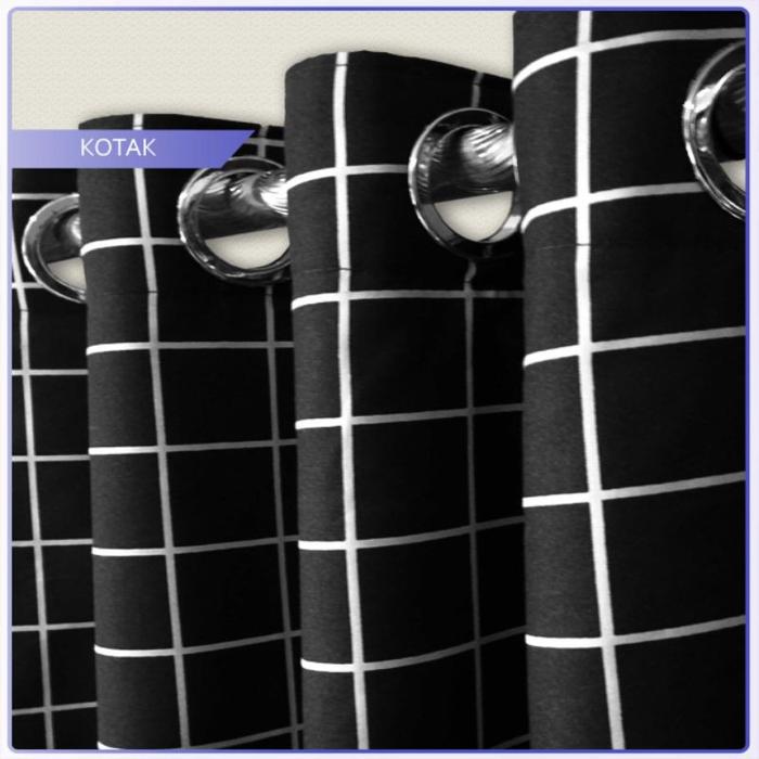 Gorden Tirai Smokring Ring Bulat Motif Kotak Hitam Estetik Ukuran Jendela & Pintu Kain Katun T200Cm Gratis Tali Dan Hook