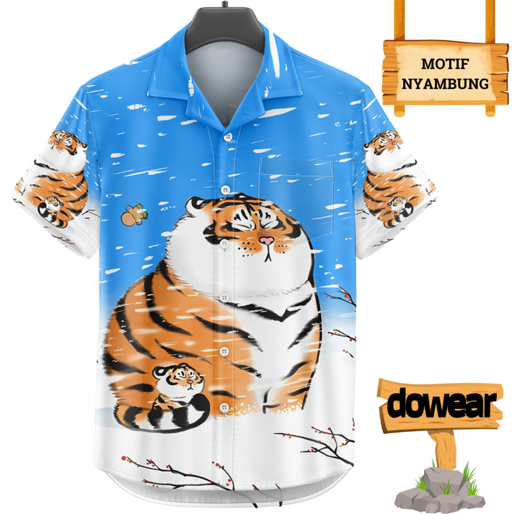 Dowear Baju Kemeja Santai Jumbo Pria Wanita Gambar printing Hawaiian Lengan Pendek 677 HARIMAU SALJU