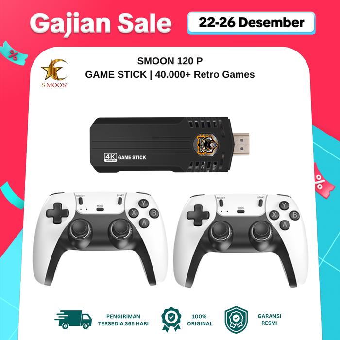 S Moon 120P Game Stick - 40.000+ Games - Kontroler Kabel & Nirkabel - Model Game 120P - Output Hdmi 4K - Memori 64Gb -