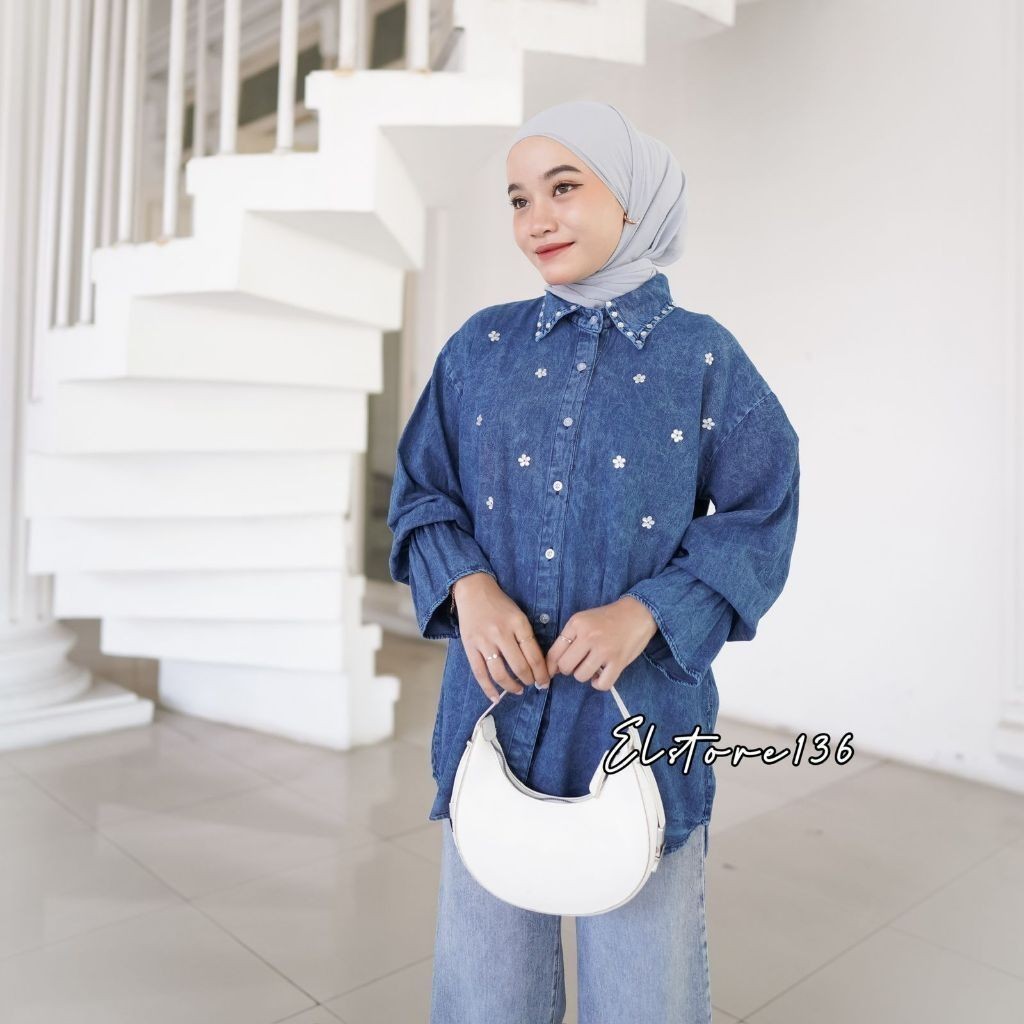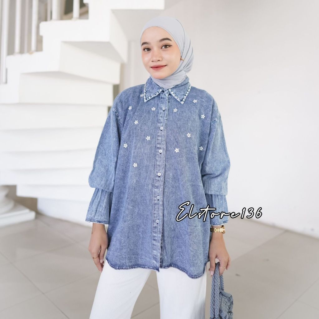 Yolana Kemeja Wanita Terbaru Kemeja Jeans Blink Payet Atasan Jins Denim Wanita Kekinian Viral Bahan Adem Ootd Terbaru