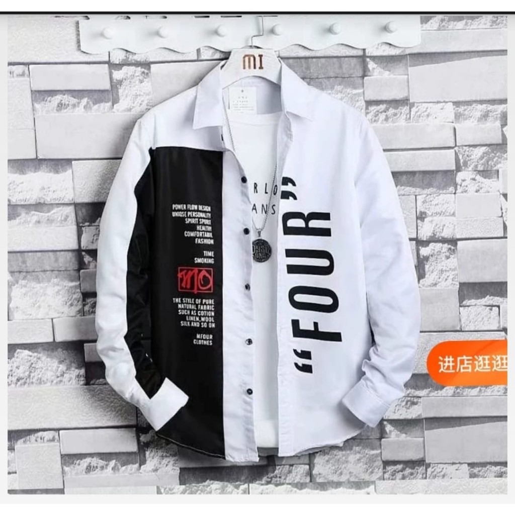 Baju Atasan Kemeja Hem Pria Lengan Pendek Motif Four Terbaru