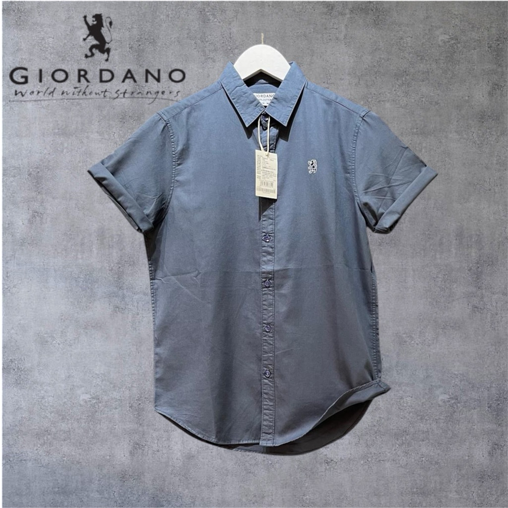 GIORDANO Kemeja Lengan Pendek Pria Pola Slim Fit Bahan Katun Twiil