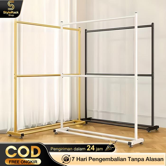 Rak Baju Gantung Berdiri 2 Susun Rak Gantungan Baju Besi Rak Baju Gawang Estetik Stand Hanger 200Cm Pakaian Portable Aes