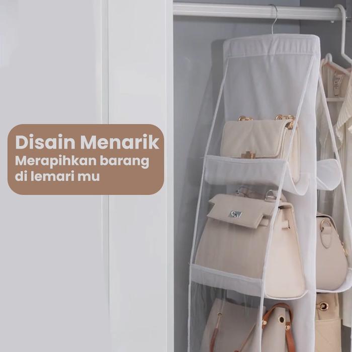 Starlight Rak Tas Gantung 6 & 8 Sekat Bag Organizer Kotak Tempat Penyimpanan Tas Anti Debu Hdk301 - 301 Putih 6 Petak