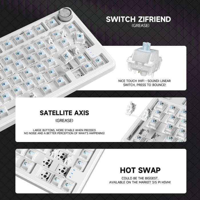 Zifriend Rx75Pro Wireless Mechanical Keyboard 75 PERSEN Layout Rgb 3-5Pin Hot Swap Independently Driven Gaming Keyboard【12M Wa