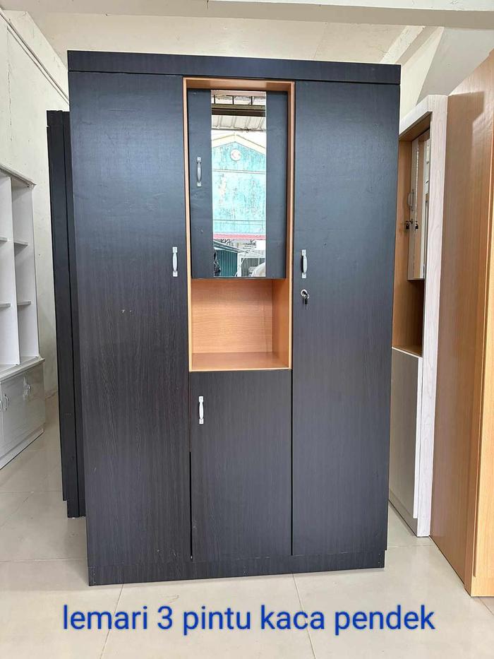 Lemari Pakaian 3 Pintu Lemari Baju Kaca Plus Gantungan Batam