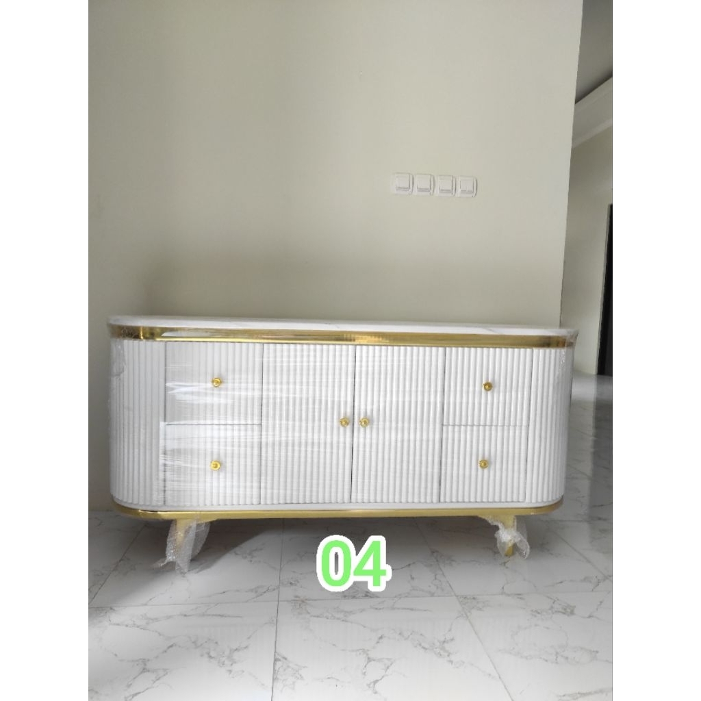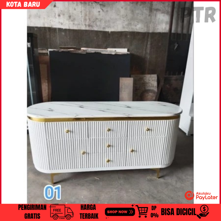 meja tv minimalis modern Buffet Oval Marmer Mewah Elegan Ukuran Besar