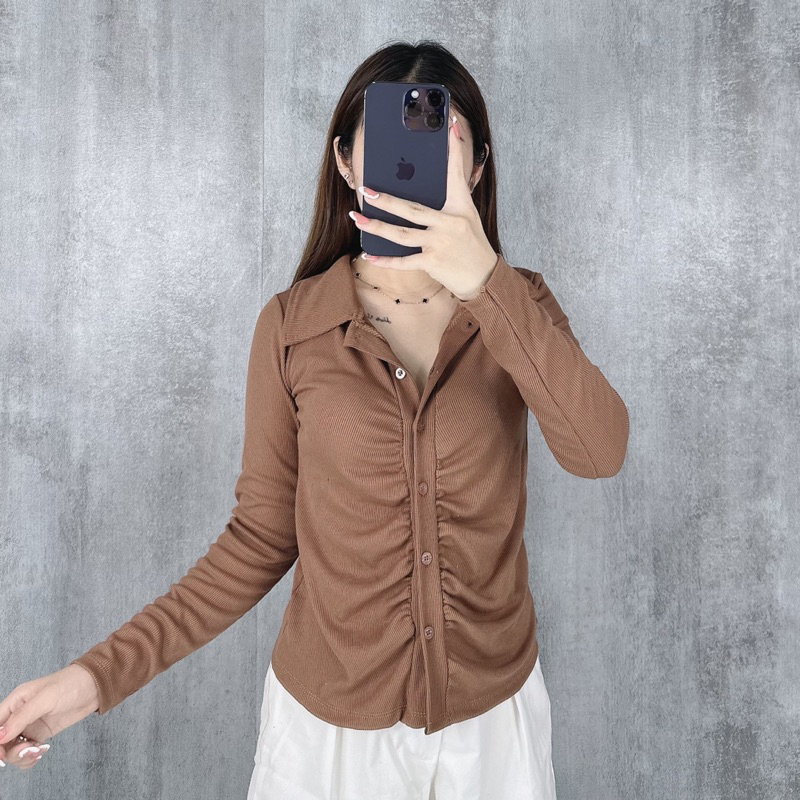 Kemeja Rib Kerut | Kemeja Wanita Kancing Kerut