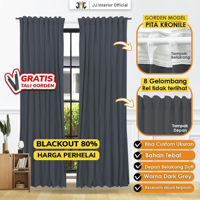 Gorden Blackout 80 PERSEN Gordyn Jendela Hordeng Dimout Tebal Pita Kronile - Grey