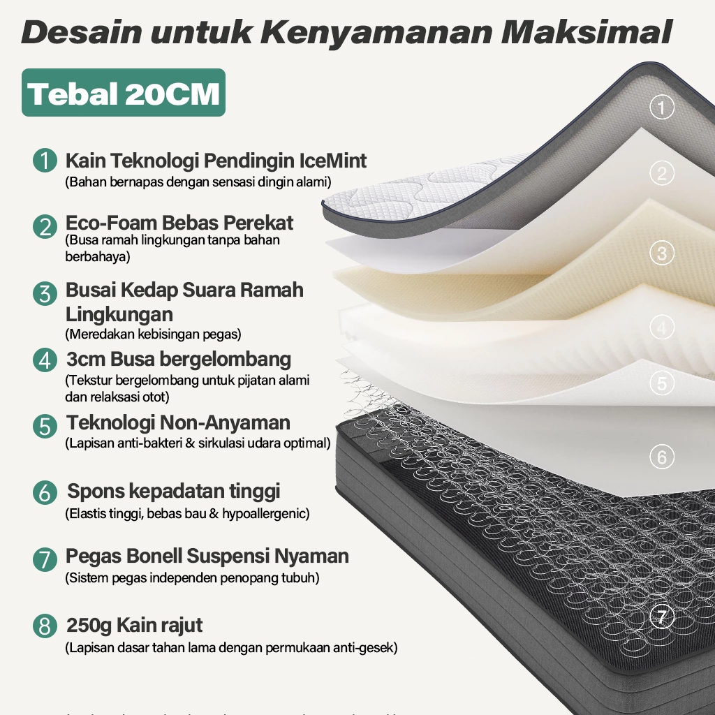 Gratis Bantal Kasur Springbed Tebal 20cm IceMint Spons Busa Empuk Lantai Matras Anti Lembab