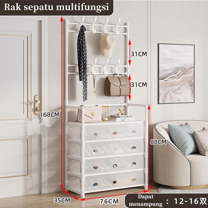 Rak Sepatu Tahan Debu Serbaguna, Rak Sepatu Lantai Lantai/Gantungan Tas Pakaian/ Rak Penyimpanan - 3L-Rak Sepatu(Tutup D