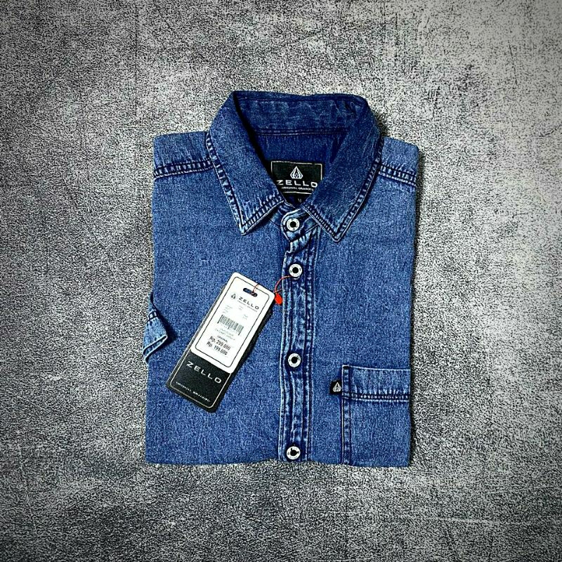 [ LOZELLO ] kemeja jeans lengan pendek pria Distro