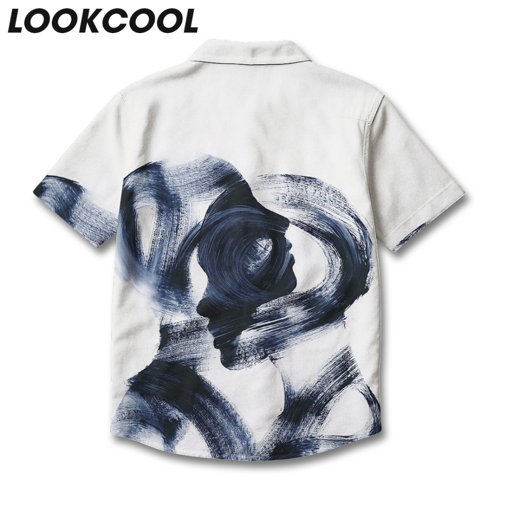 LOOKCOOL Kemeja Putih Unisex Motif Lukisan Abstrak Sisi Profil Desain Unik dan Artistik
