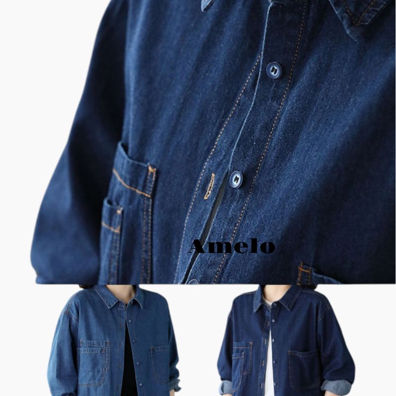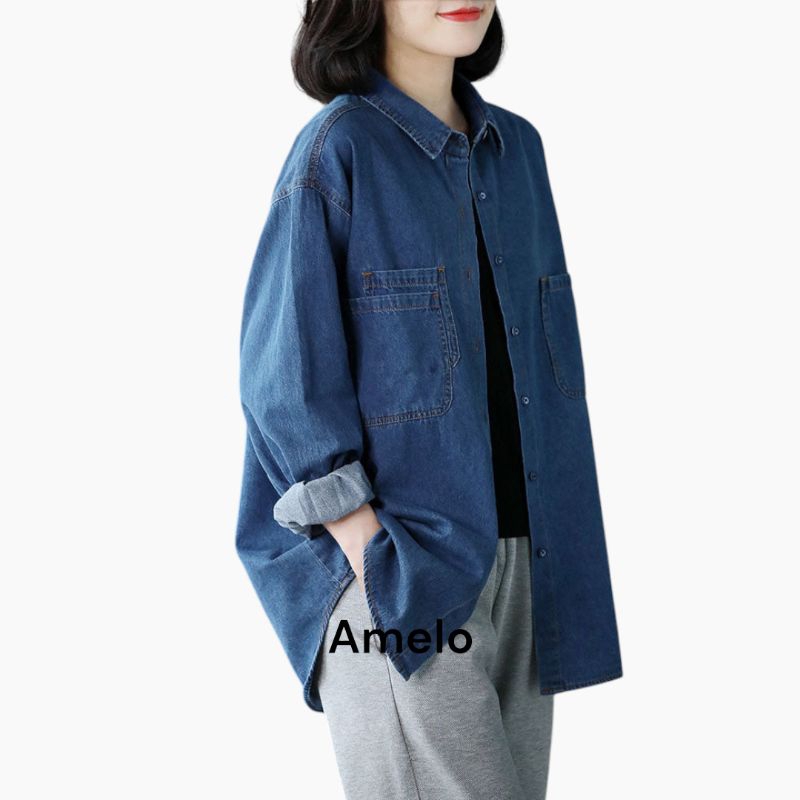 Amelo Kemeja Jeans Atasan Wanita / Cotton Denim Coats / Peter Pan Collar