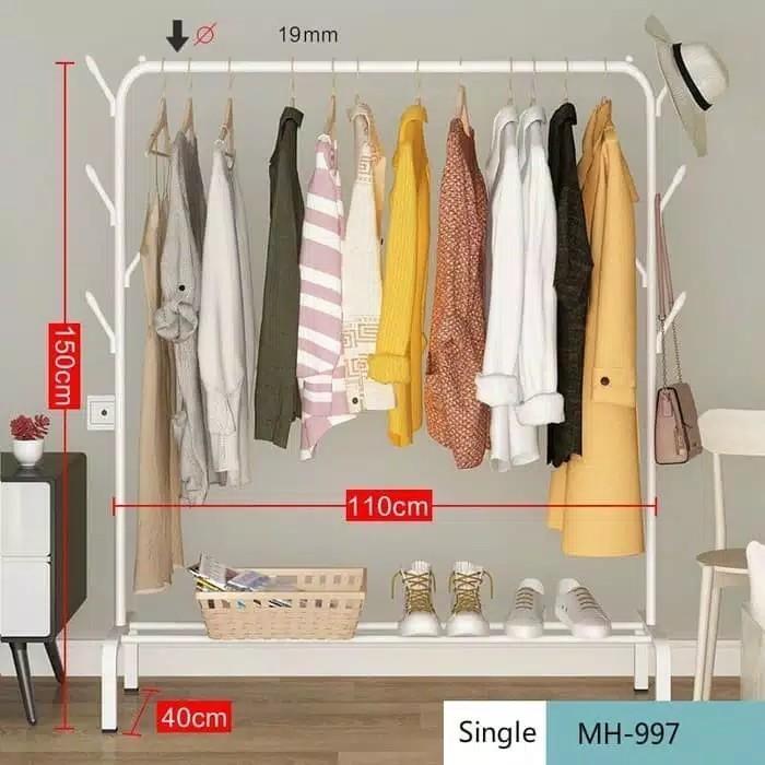 Stand Hanger Gantungan Baju Rak Sepatu Koper Tas Gamis Standing Lemari - Single Putih