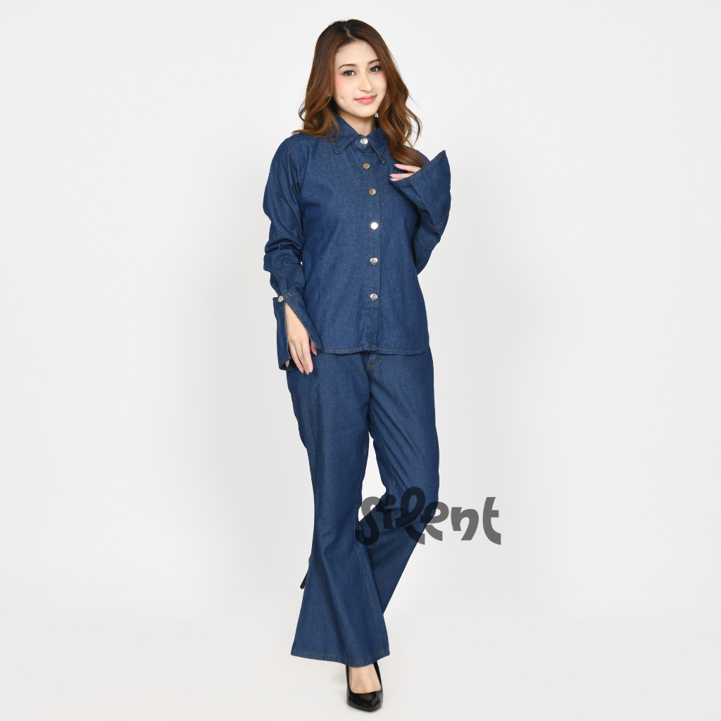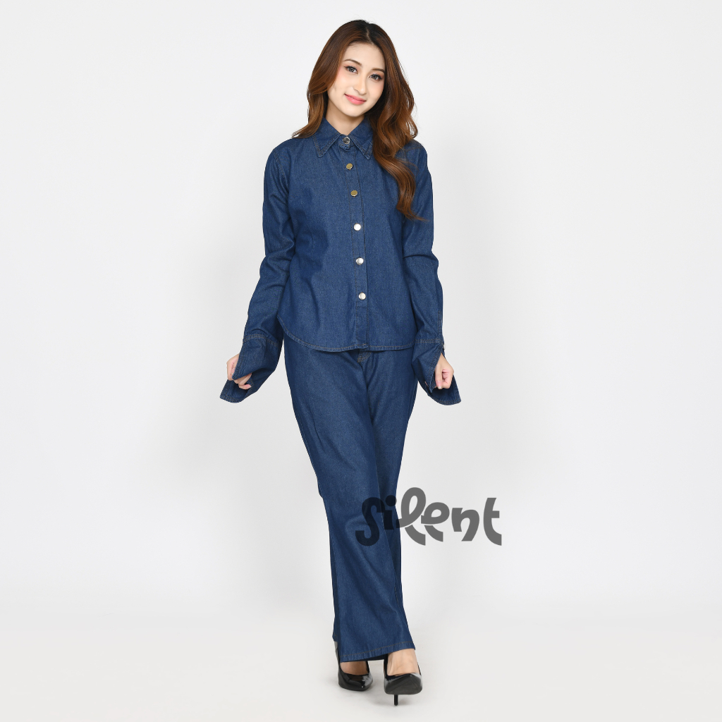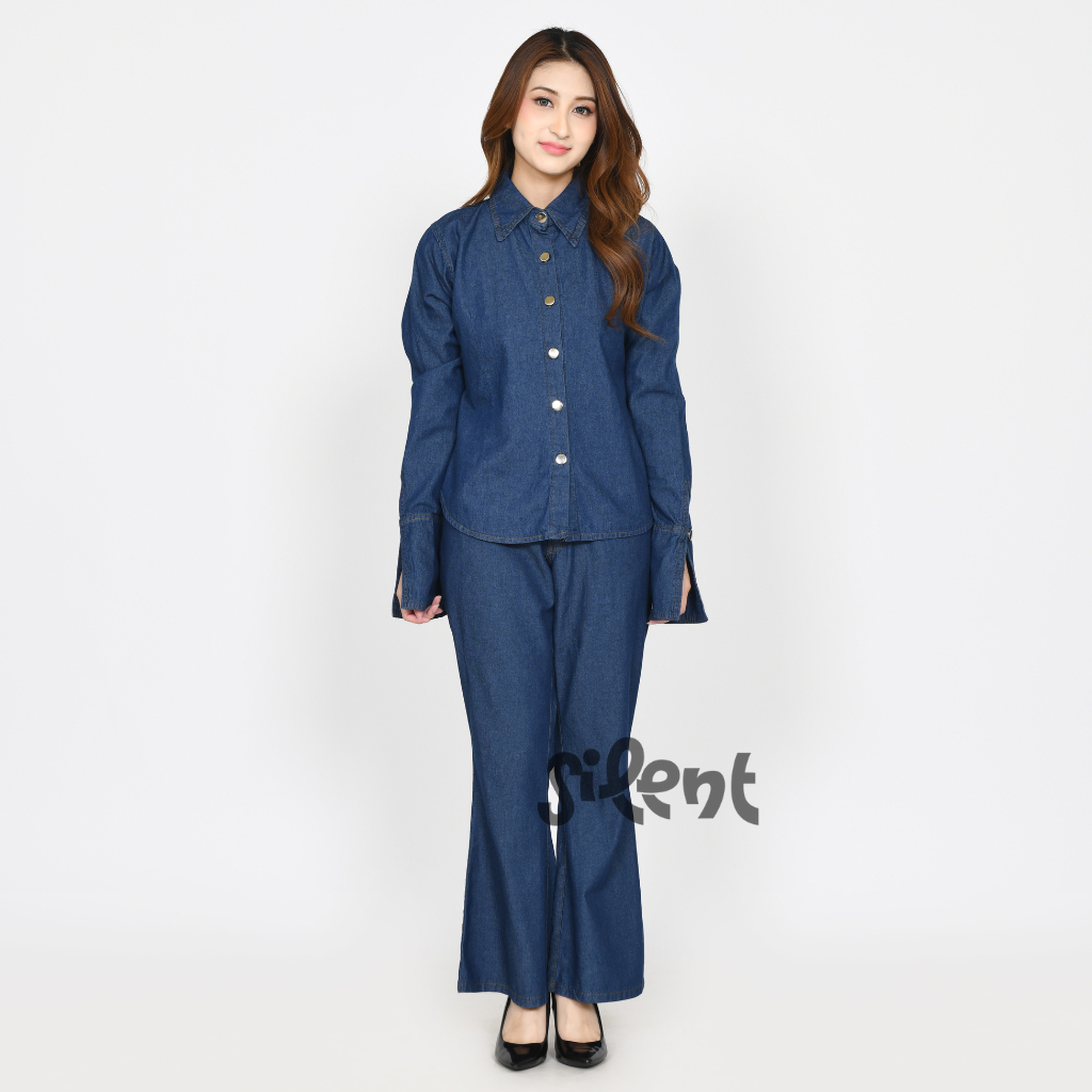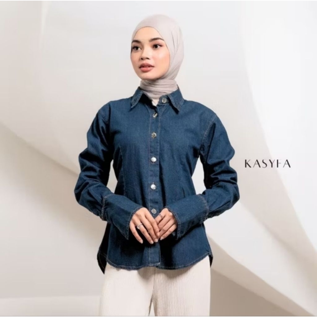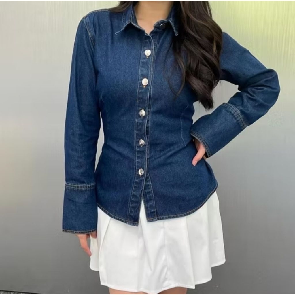 Msilent Noelle Denim Fitted Shirt Kemeja Denim Jeans Wanita Fitted Slim Fitted Shirt Fit Body