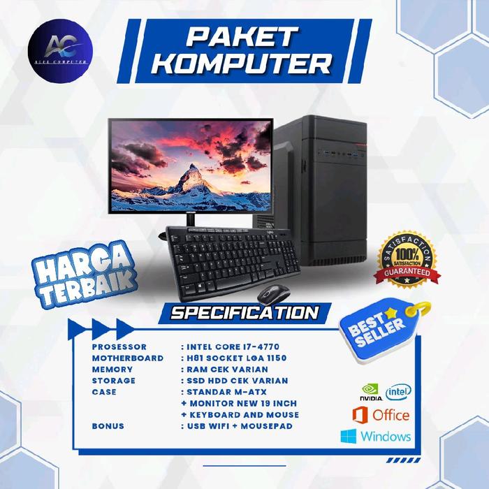 Paket Pc Komputer Rakitan Fullset Server Core I7 4770 - Case Standar - 16Gb, Ssd512+Hdd1Tb