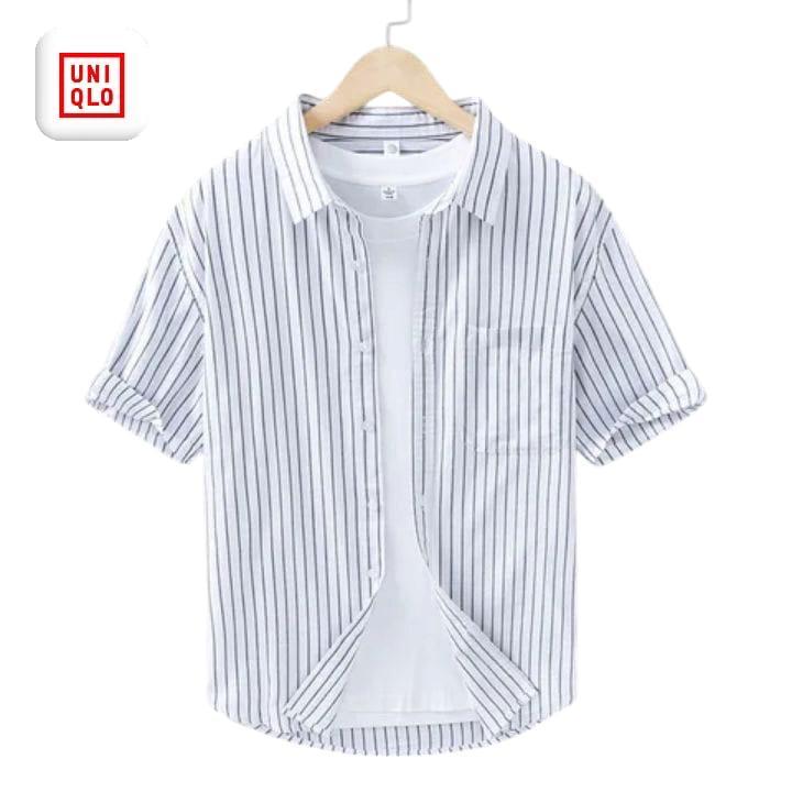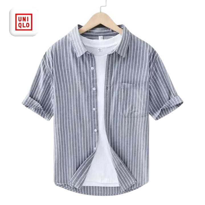 Kemeja Pria Motif Garis Lengan Pendek Slim Fit Casual Korean Style Adem Stylish Katun Premium