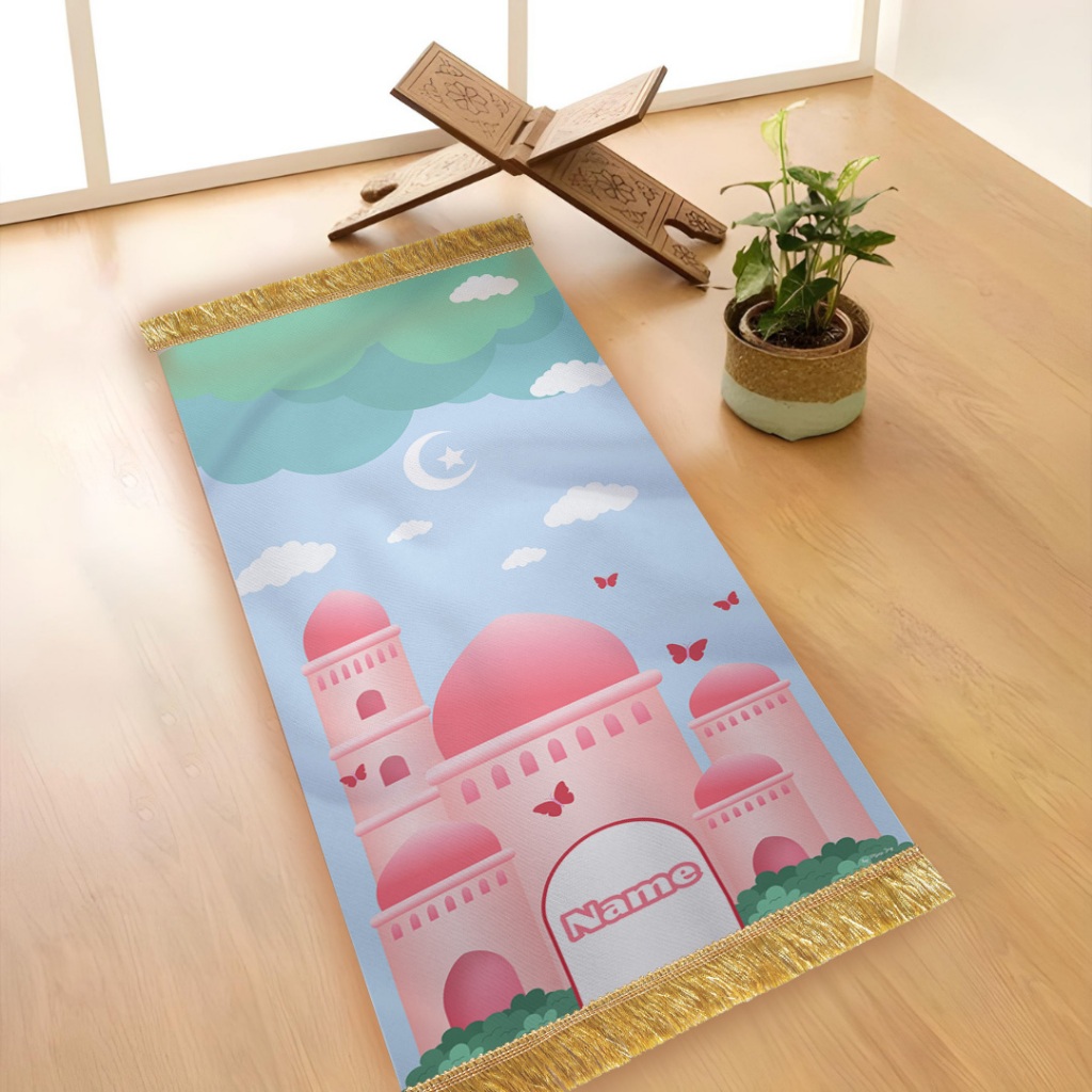 Sajadah Travel Anak Laki Perempuan TK SD Model Rumbai Anti Slip Minijoy Free Pouch