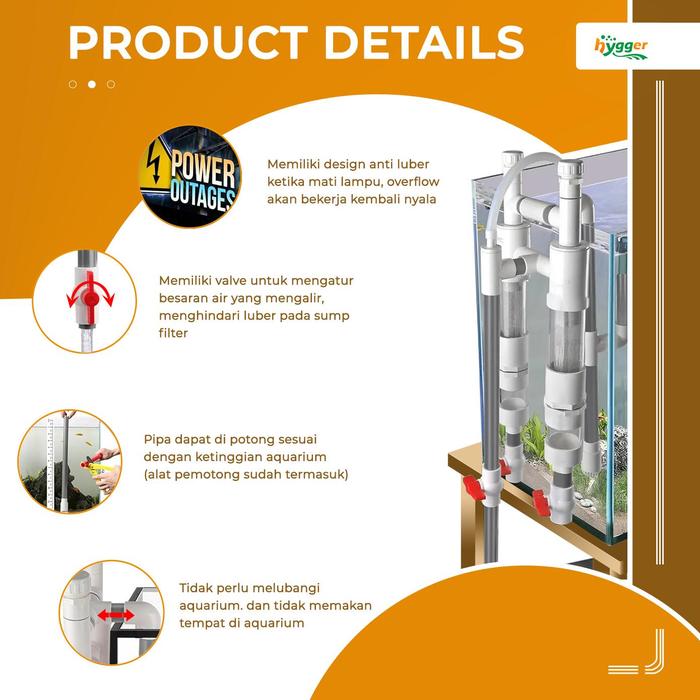 Overflow Aquarium Original Hygger / Pipa Filterasi Overflow / Fish Waste Collector Hygger - Grey