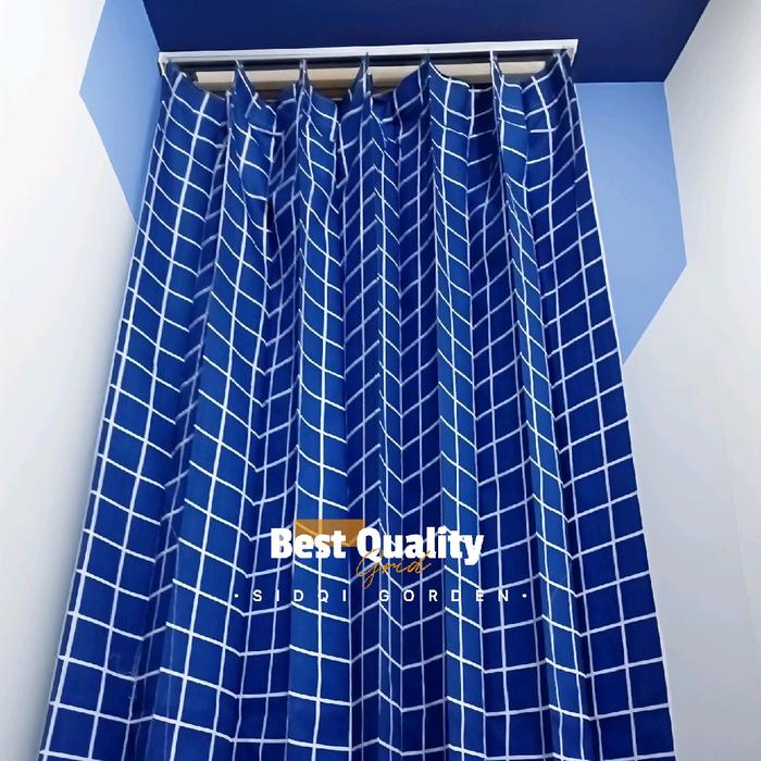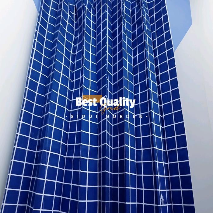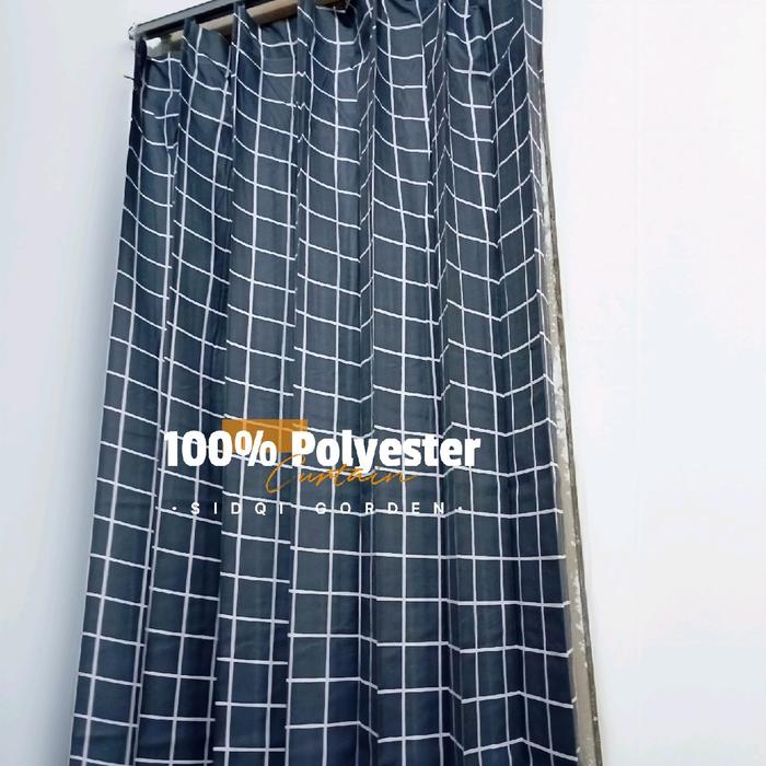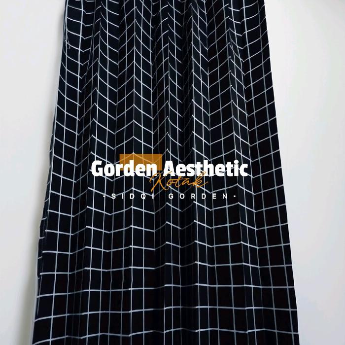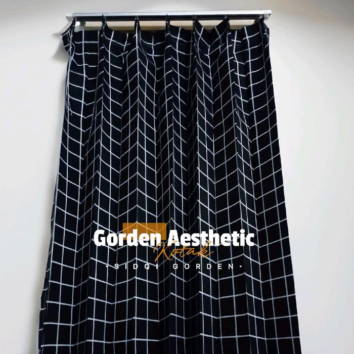 Tirai Gorden Plisket Jendela Pintu Motip Kotak-Kotak Aesthetics Curtain - Kotak Hitam, L 100 Cm X T 50 Cm