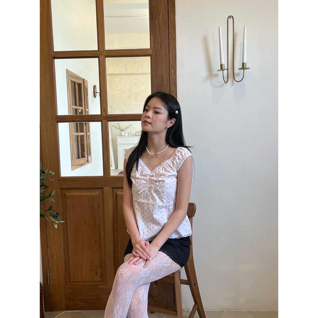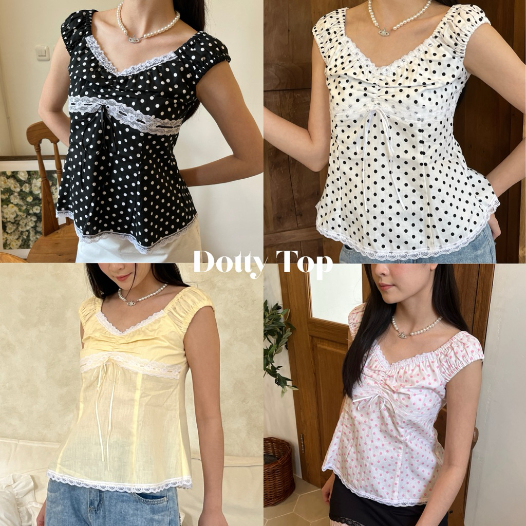 Dotty Top Atasan Wanita Polkadot Sabrina Summer Top Korean Style Wanita Polkadot