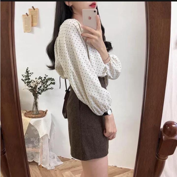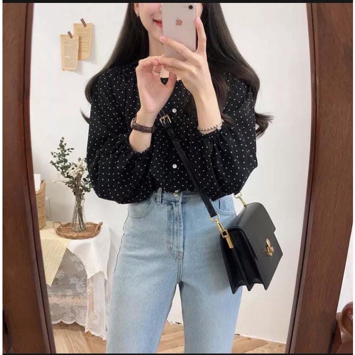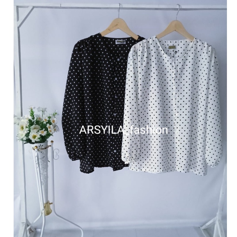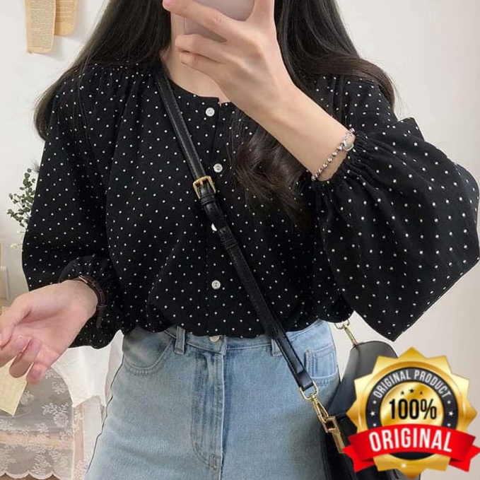 Blouse Korea Kayoung Blouse Jumbo Ld 120 Atasan Volkadot Atasan Wanita Pakaian Korean Style