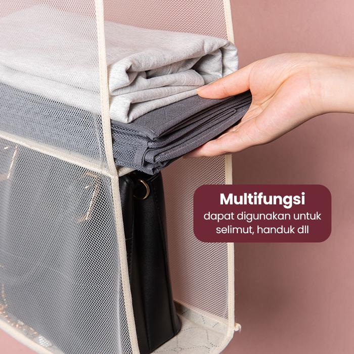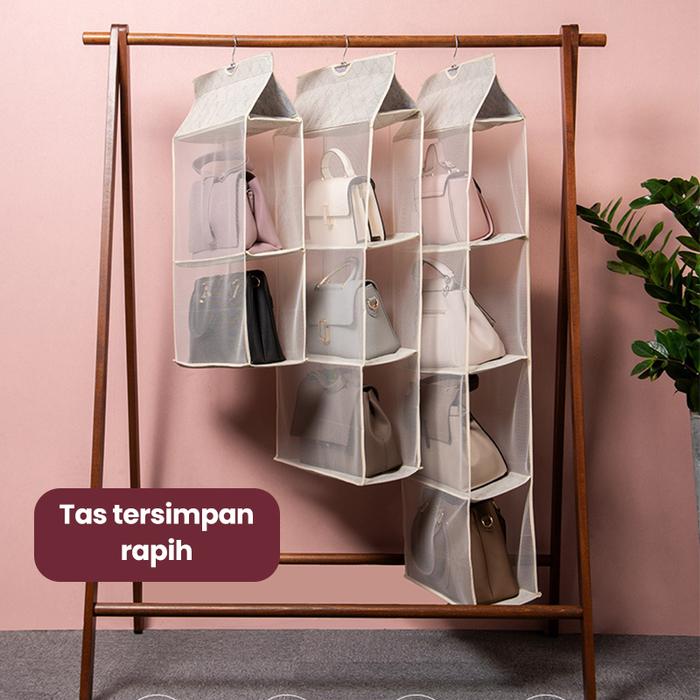 Halu Rak Tas Gantung Bag Organizer Rak Bag Kotak Tempat Penyimpanan Tas Bag Storage Anti Debu Sebaguna Hdk306 - Abu 4 Pe