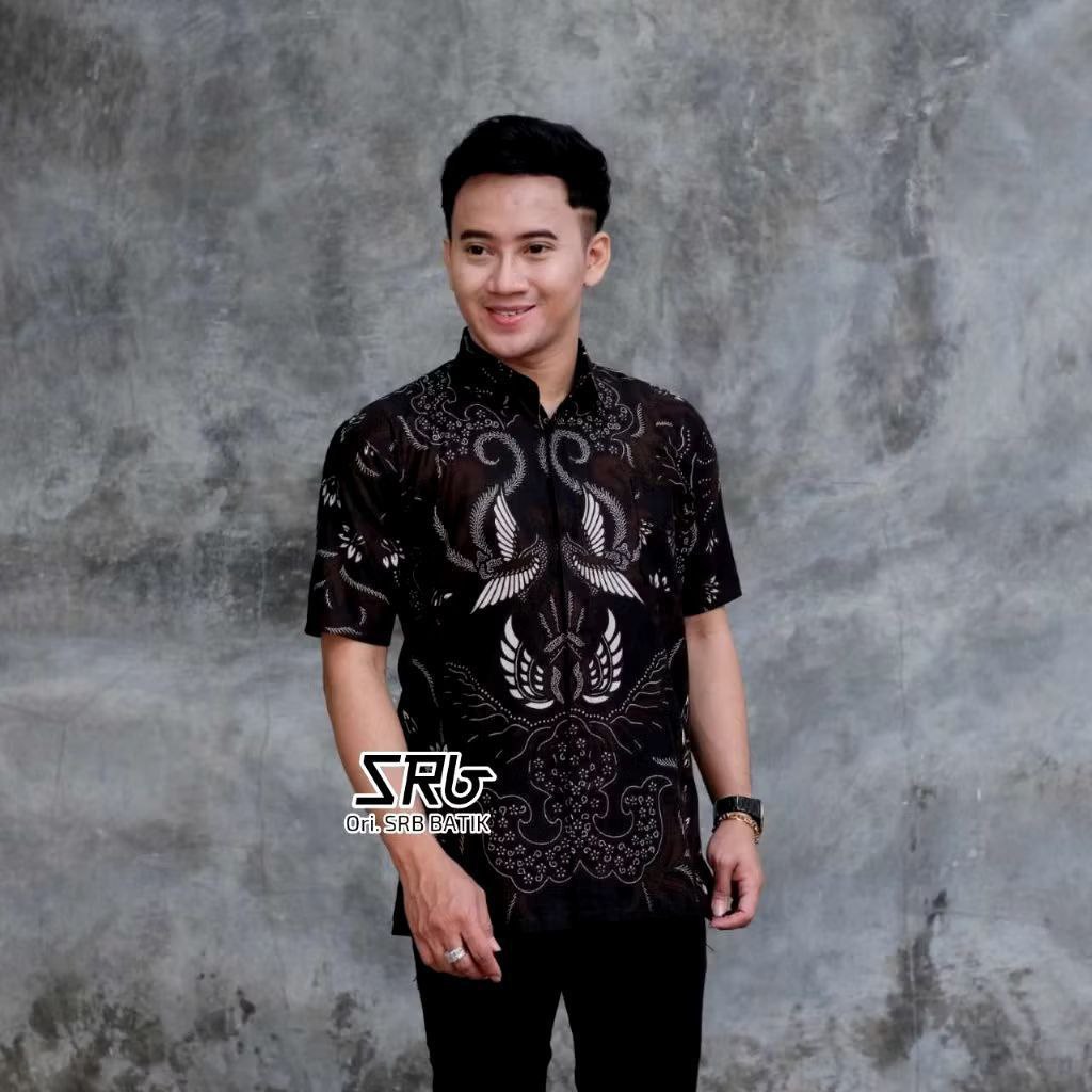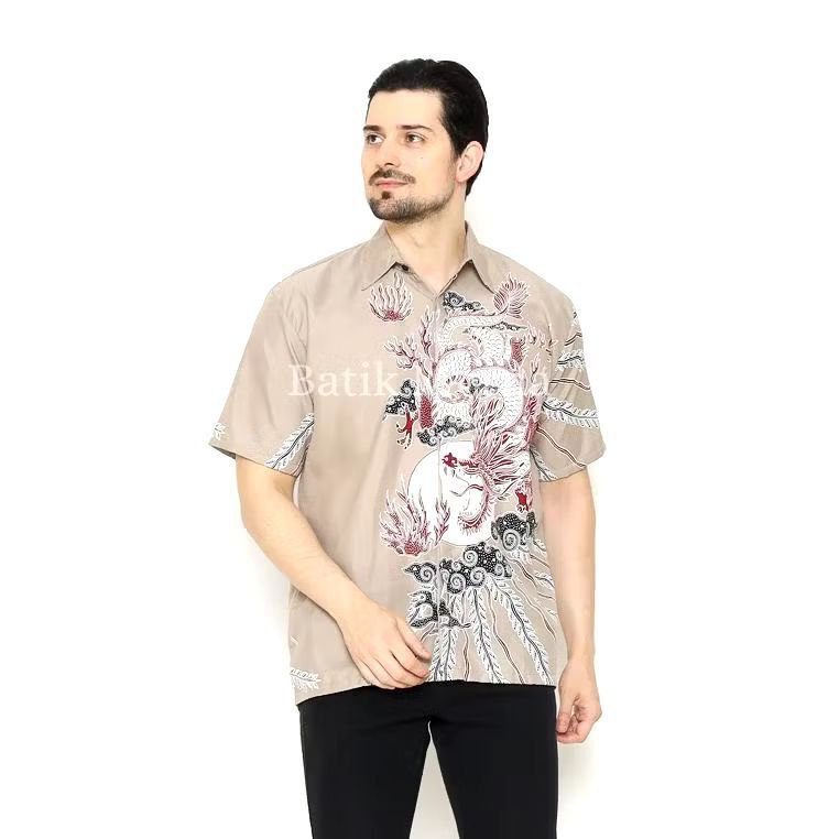 KEMEJA BATIK PRIA LENGAN PENDEK MOCCA NAGA MERAH TRENDY SIZE M L XL XXL