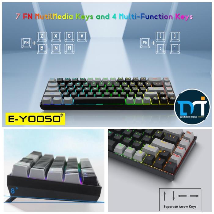 E-Yooso Z686 - Rgb 68 PERSEN Hotswapable Mechanical Gaming Keyboard I Z-686 - Black-Grey, Red Sw