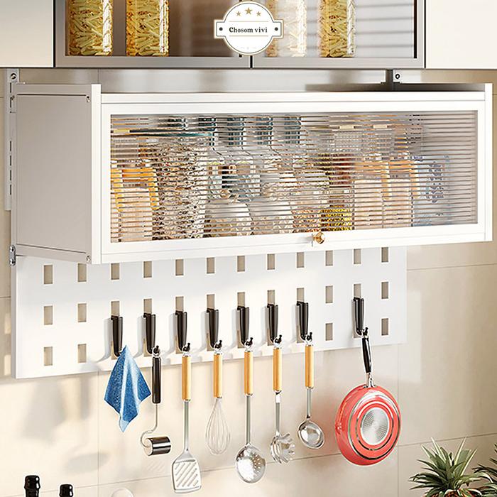Lemari Gantung Dapur Rak Multi-Fungsi Pemasangan Tanpa Lubang Tahan Debu Dan Serangga - Hitam 65Cm Pegboard