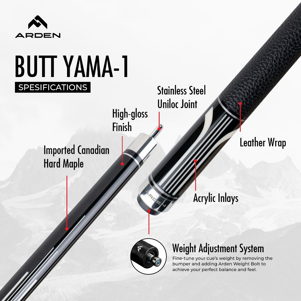 Stick Billiard ARDEN YAMA - Stick Maple Inlay untuk Pemula | Full Set Butt & Shaft Maple